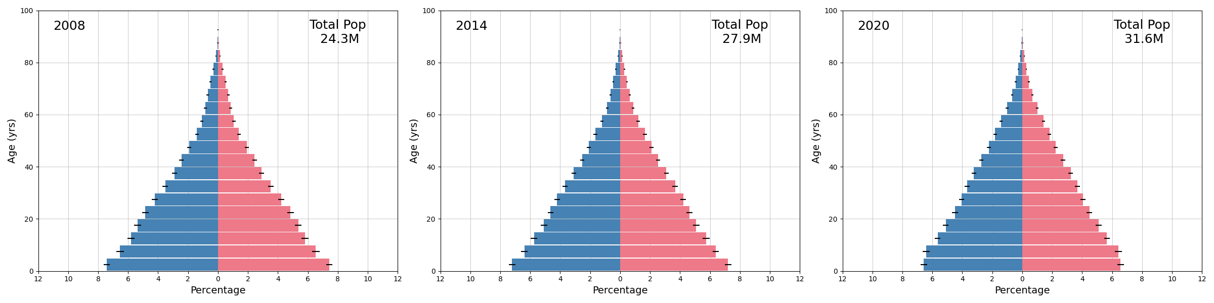 UN WPP estimates for total population and population age structure were used to create a representation of the demography of Ghana.