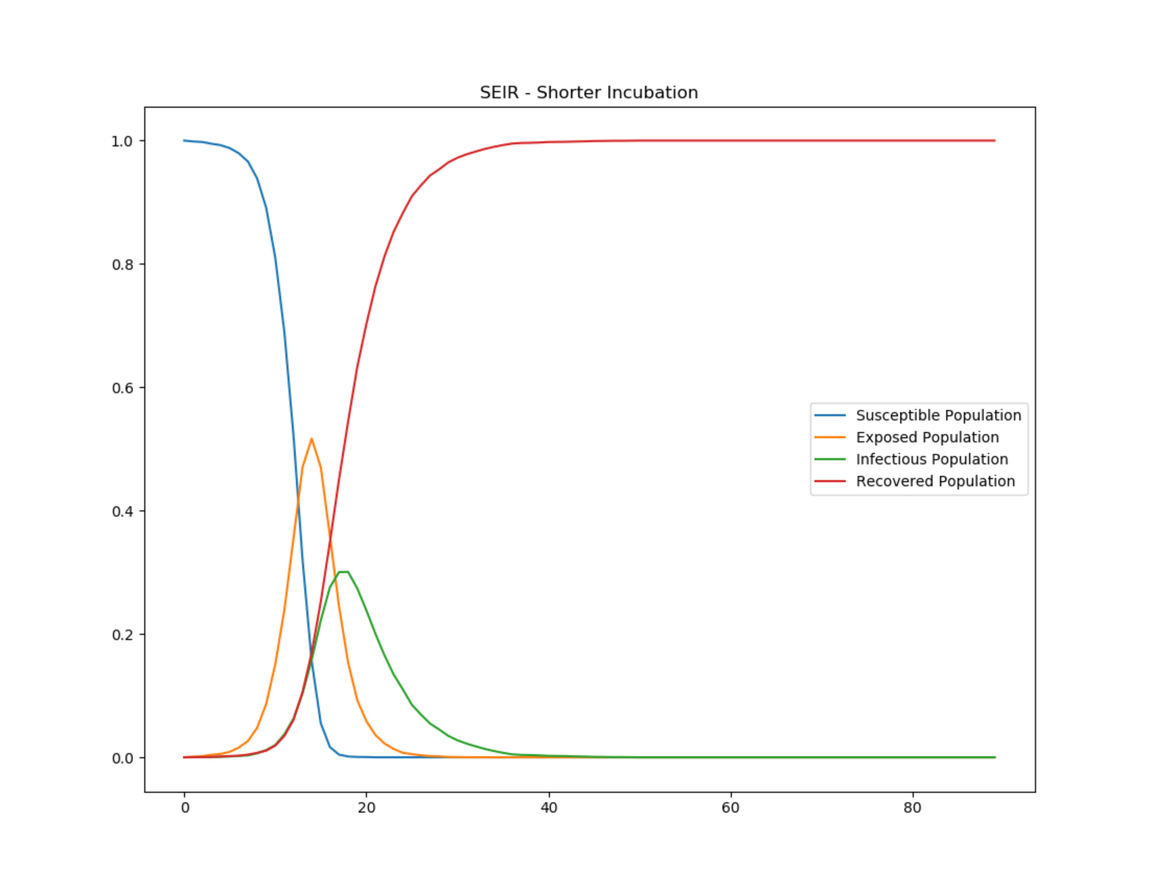 Figure 3: SEIR epidemic course for 2-day incubation period#